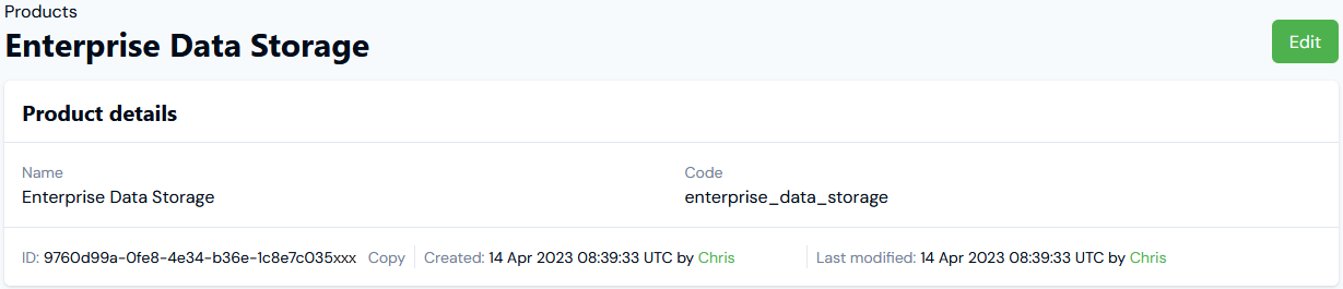 5. If you want to edit a Product's details, select the Edit button, make your changes, and click Update.