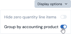 8. Under Display options, select to Group by accounting product: