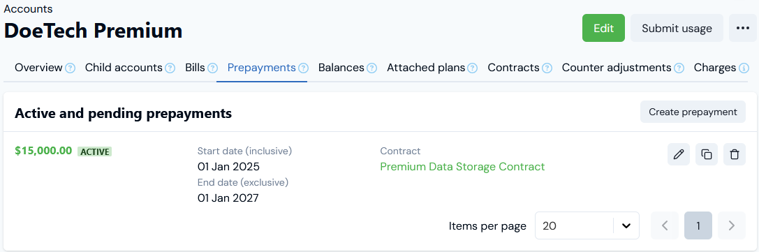 If you want to renew a contract with an existing end customer Account and want to include a Prepayment in the customer's contract renewal, you can quickly duplicate either an active or pending Prepayment you've already created for the Account: