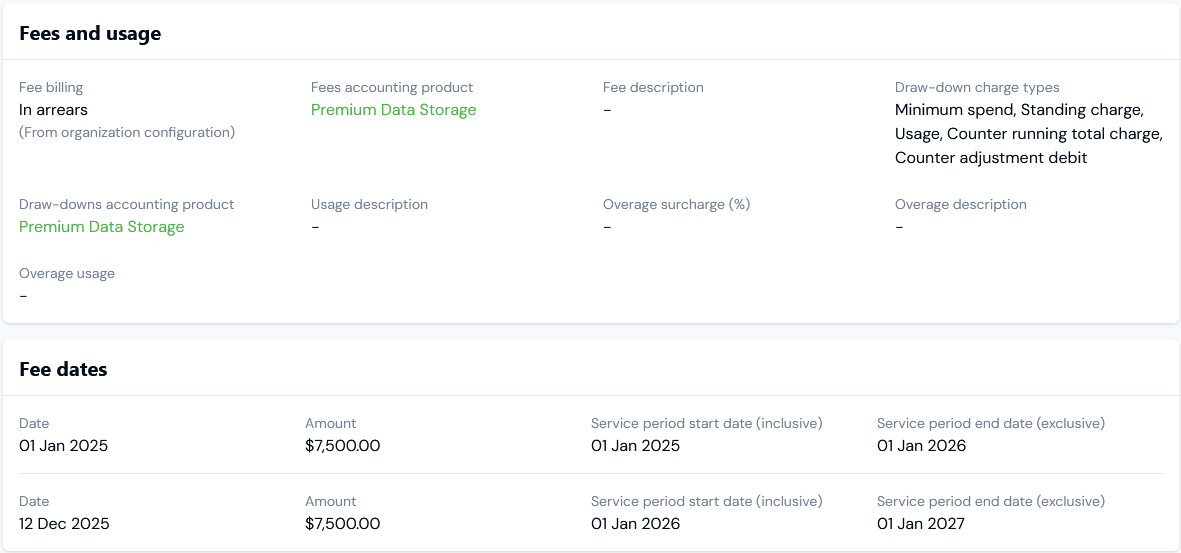 Tip: Prepayment/Commitment fee - billing in arrears or in advance? You can configure this at the Organizational level - see Viewing and Editing Organization Configuration.