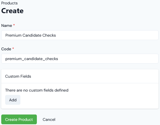 2. Select Create Product. We'll create a single Product called Premium Candidate Checks: