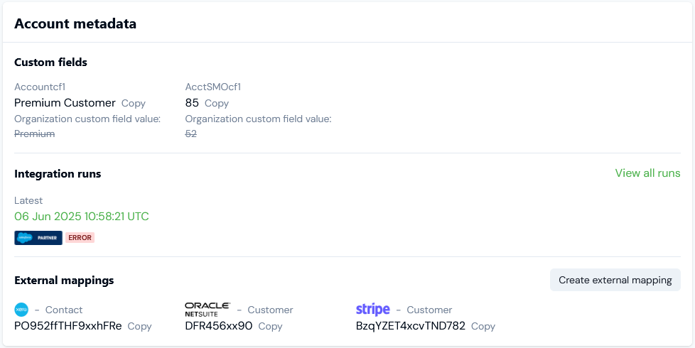 The external entity ID mapped to is also shown, and you can Copy this to your clipboard.
