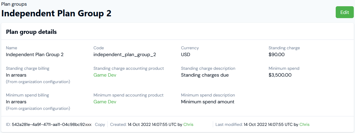 9. On the Plan group details page, you can also review Plan group metadata: