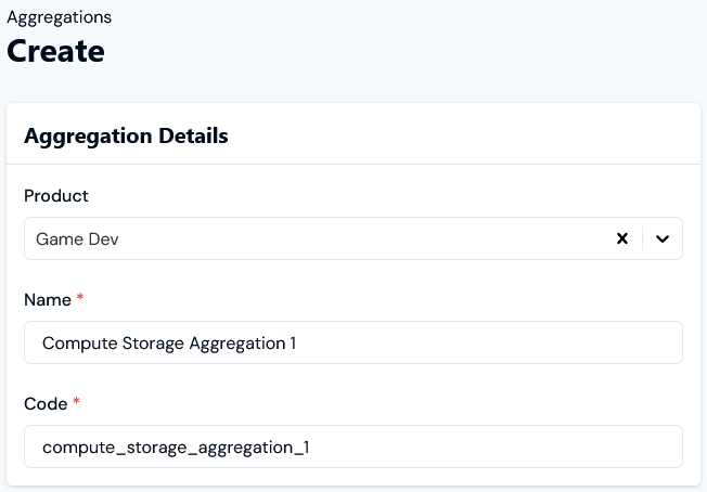 Tip: Global Aggregation? You can create a Global Aggregation, which is not tied to a specific Product. You can then use Global Aggregations to charge across several Products. For more details, see Creating Global Aggregations.